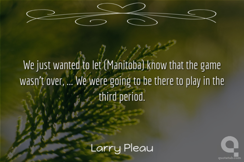 We just wanted to let (Manitoba) know that the game wasn't over, ... We were going to be there to play in the third period.