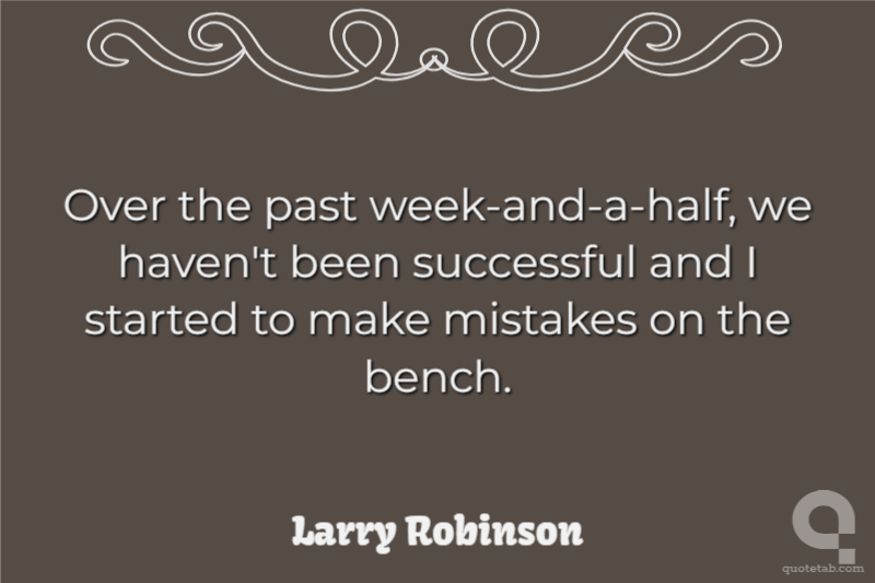 Over the past week-and-a-half, we haven't been successful and I started to make mistakes on the bench.