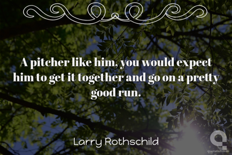 A pitcher like him, you would expect him to get it together and go on a pretty good run.
