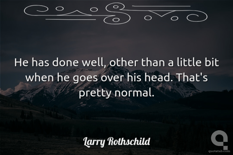 He has done well, other than a little bit when he goes over his head. That's pretty normal.
