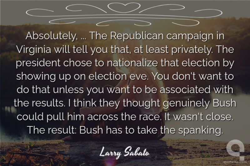 Absolutely, ... The Republican campaign in Virginia will tell you that, at least privately. The president chose to nationalize that election by showing up on election eve. You don't want to do that unless you want to be associated with the results. I think they thought genuinely Bush could pull him across the race. It wasn't close. The result: Bush has to take the spanking.