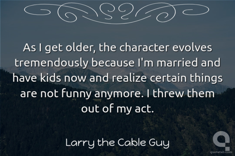 As I get older, the character evolves tremendously because I'm married and have kids now and realize certain things are not funny anymore. I threw them out of my act.