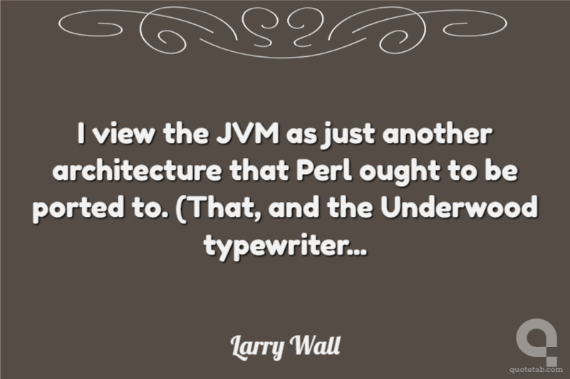 I view the JVM as just another architecture that Perl ought to be ported to. (That, and the Underwood typewriter...