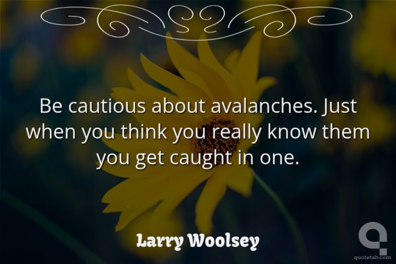 Be cautious about avalanches. Just when you think you really know them you get caught in one.