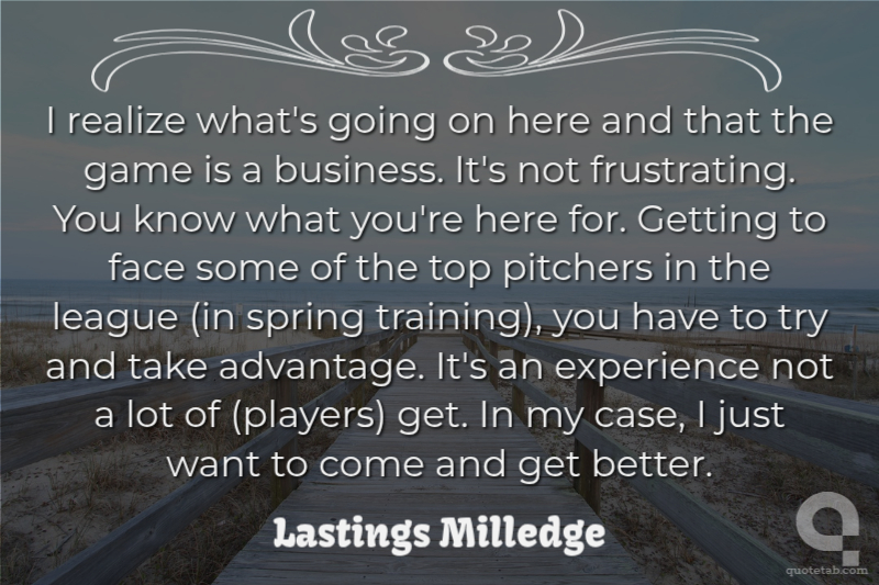 I realize what's going on here and that the game is a business. It's not frustrating. You know what you're here for. Getting to face some of the top pitchers in the league (in spring training), you have to try and take advantage. It's an experience not a lot of (players) get. In my case, I just want to come and get better.