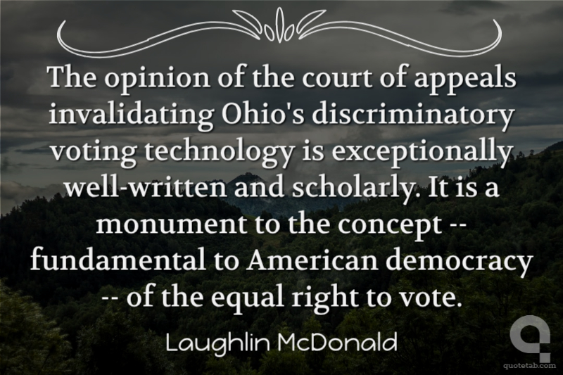 The opinion of the court of appeals invalidating Ohio's discriminatory voting technology is exceptionally well-written and scholarly. It is a monument to the concept -- fundamental to American democracy -- of the equal right to vote.