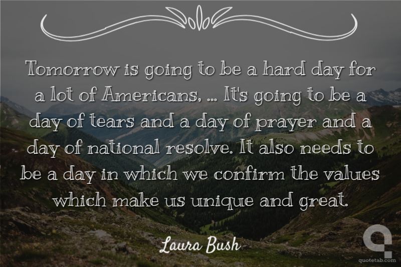 Tomorrow is going to be a hard day for a lot of Americans, ... It's going to be a day of tears and a day of prayer and a day of national resolve. It also needs to be a day in which we confirm the values which make us unique and great.