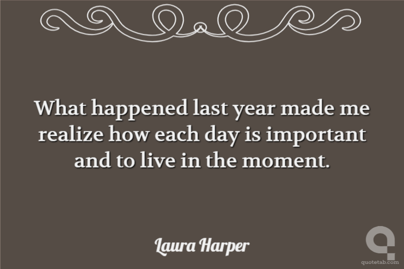 What happened last year made me realize how each day is important and to live in the moment.