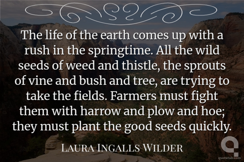The life of the earth comes up with a rush in the springtime. All the wild seeds of weed and thistle, the sprouts of vine and bush and tree, are trying to take the fields. Farmers must fight them with harrow and plow and hoe; they must plant the good seeds quickly.