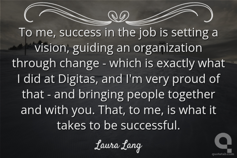 To me, success in the job is setting a vision, guiding an organization through change - which is exactly what I did at Digitas, and I'm very proud of that - and bringing people together and with you. That, to me, is what it takes to be successful.