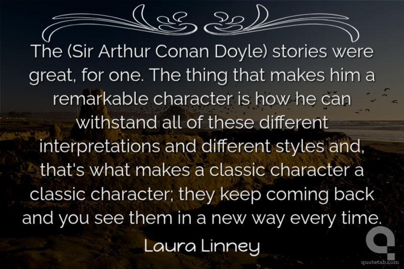 The (Sir Arthur Conan Doyle) stories were great, for one. The thing that makes him a remarkable character is how he can withstand all of these different interpretations and different styles and, that's what makes a classic character a classic character; they keep coming back and you see them in a new way every time.