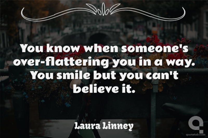 You know when someone's over-flattering you in a way. You smile but you can't believe it.