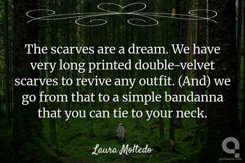 The scarves are a dream. We have very long printed double-velvet scarves to revive any outfit. (And) we go from that to a simple bandanna that you can tie to your neck.
