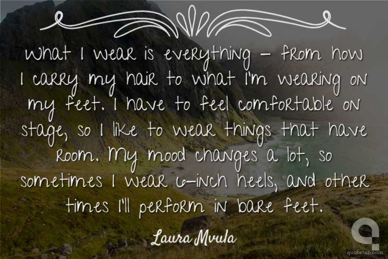 What I wear is everything - from how I carry my hair to what I'm wearing on my feet. I have to feel comfortable on stage, so I like to wear things that have room. My mood changes a lot, so sometimes I wear 6-inch heels, and other times I'll perform in bare feet.
