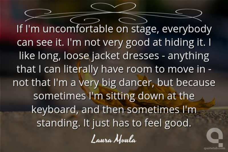If I'm uncomfortable on stage, everybody can see it. I'm not very good at hiding it. I like long, loose jacket dresses - anything that I can literally have room to move in - not that I'm a very big dancer, but because sometimes I'm sitting down at the keyboard, and then sometimes I'm standing. It just has to feel good.