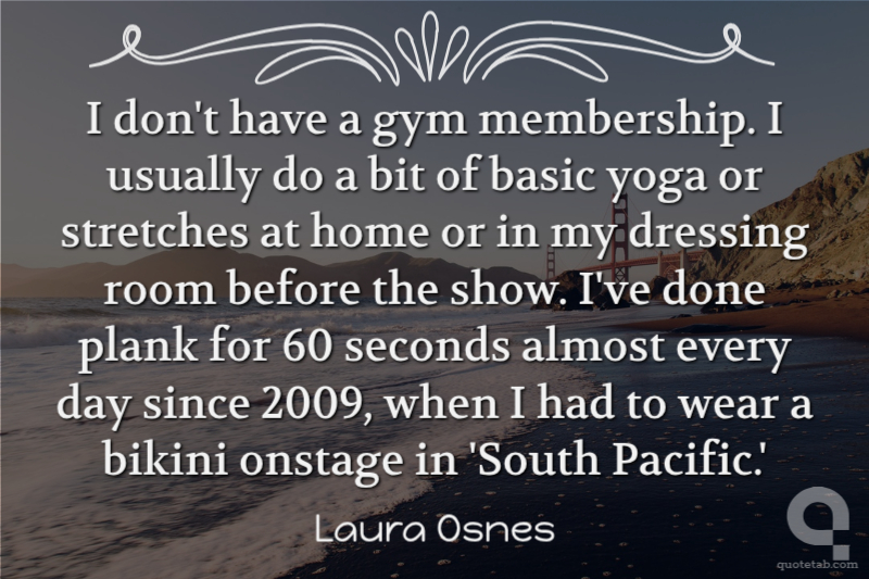 I don't have a gym membership. I usually do a bit of basic yoga or stretches at home or in my dressing room before the show. I've done plank for 60 seconds almost every day since 2009, when I had to wear a bikini onstage in 'South Pacific.'