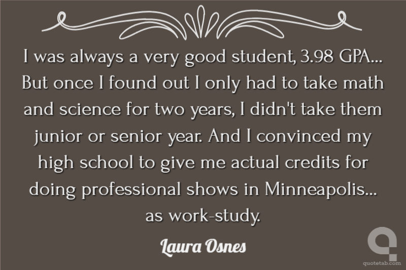 I was always a very good student, 3.98 GPA... But once I found out I only had to take math and science for two years, I didn't take them junior or senior year. And I convinced my high school to give me actual credits for doing professional shows in Minneapolis... as work-study.