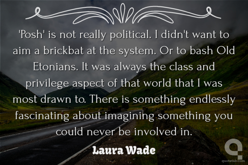 'Posh' is not really political. I didn't want to aim a brickbat at the system. Or to bash Old Etonians. It was always the class and privilege aspect of that world that I was most drawn to. There is something endlessly fascinating about imagining something you could never be involved in.