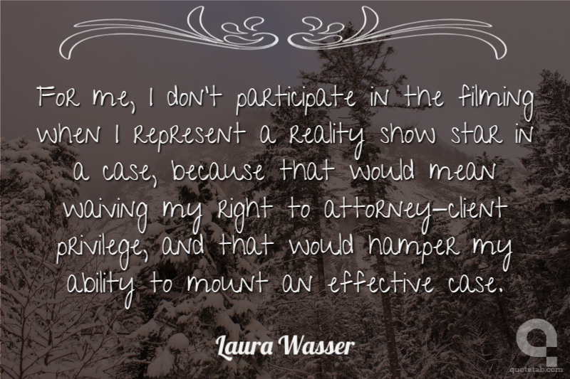 For me, I don't participate in the filming when I represent a reality show star in a case, because that would mean waiving my right to attorney-client privilege, and that would hamper my ability to mount an effective case.
