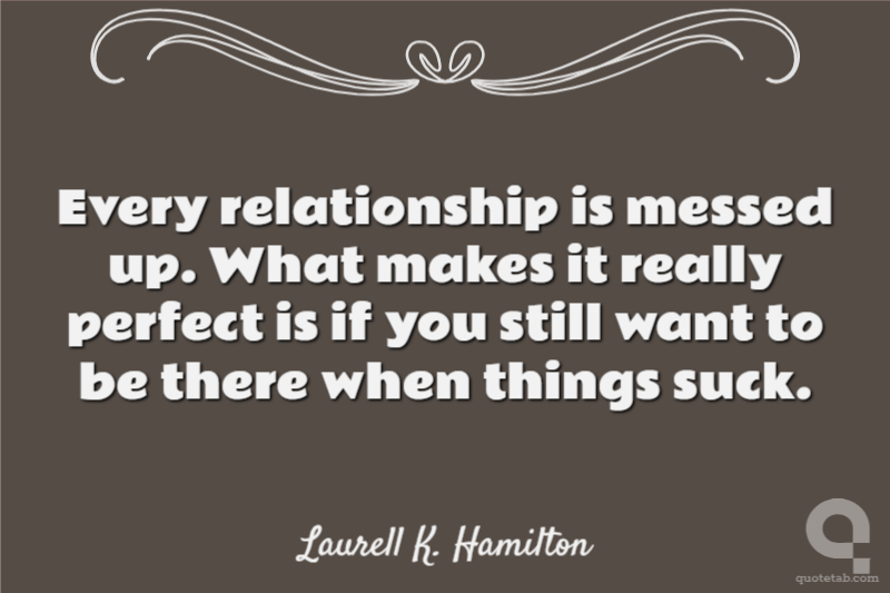 Every relationship is messed up. What makes it really perfect is if you still want to be there when things suck.