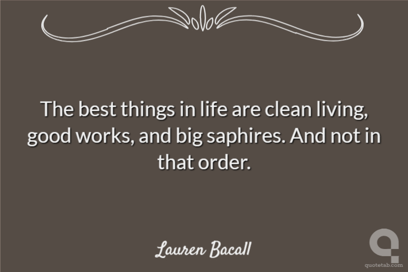 The best things in life are clean living, good works, and big saphires. And not in that order.