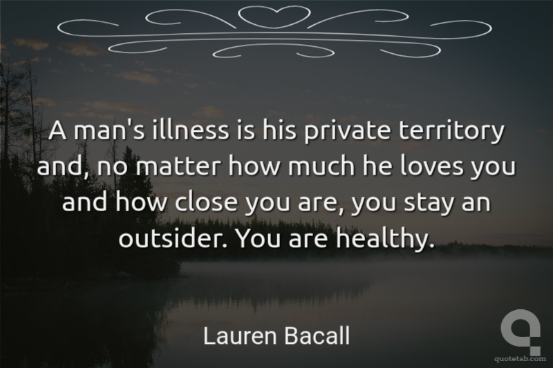 A man's illness is his private territory and, no matter how much he loves you and how close you are, you stay an outsider. You are healthy.