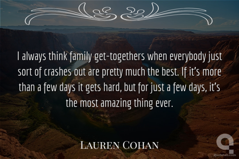 I always think family get-togethers when everybody just sort of crashes out are pretty much the best. If it's more than a few days it gets hard, but for just a few days, it's the most amazing thing ever.