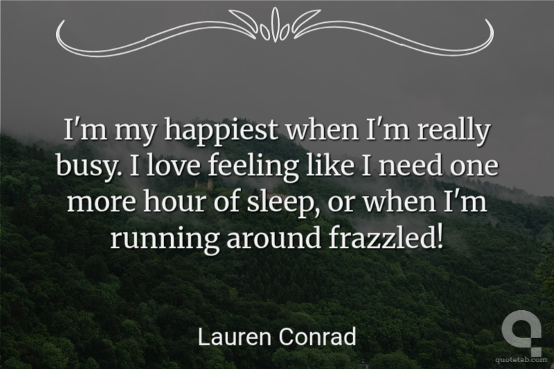 I'm my happiest when I'm really busy. I love feeling like I need one more hour of sleep, or when I'm running around frazzled!