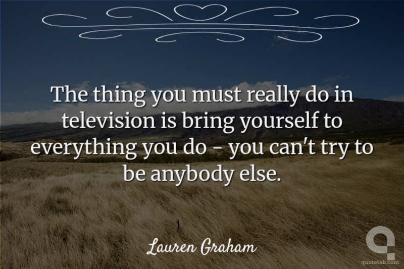 The thing you must really do in television is bring yourself to everything you do - you can't try to be anybody else.