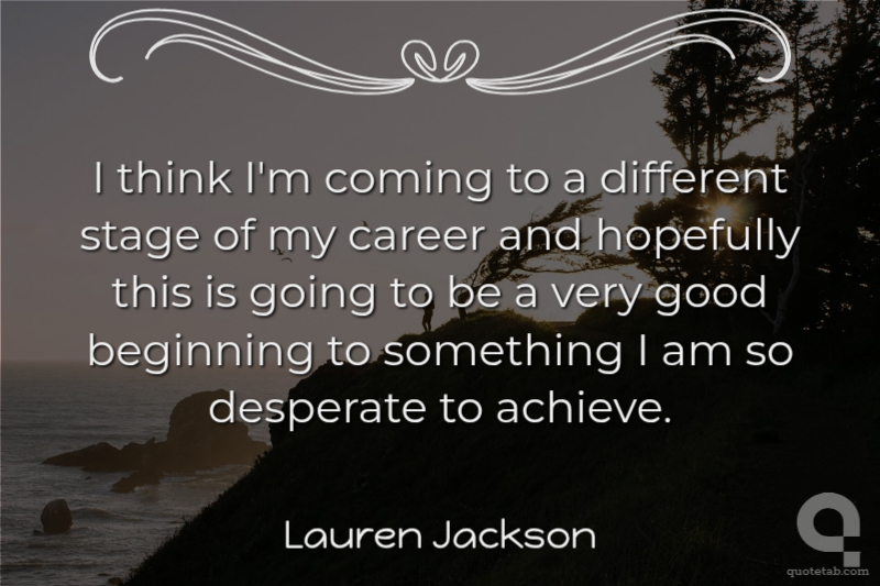 I think I'm coming to a different stage of my career and hopefully this is going to be a very good beginning to something I am so desperate to achieve.