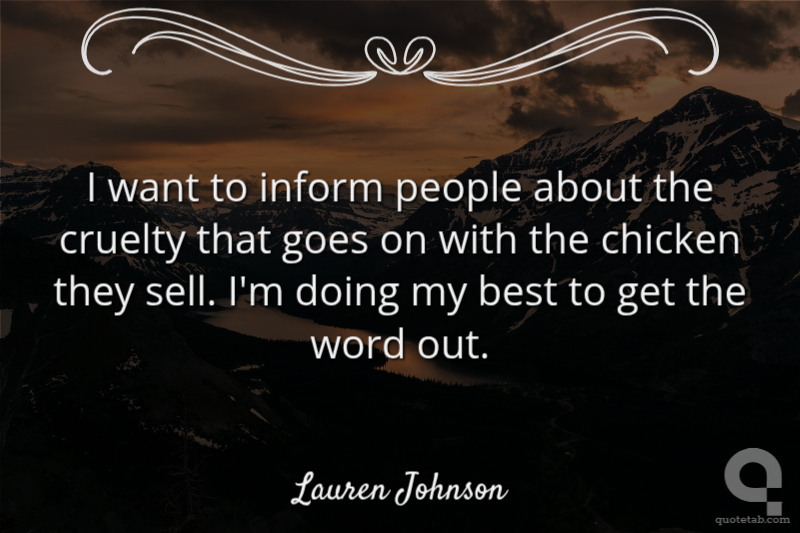 I want to inform people about the cruelty that goes on with the chicken they sell. I'm doing my best to get the word out.