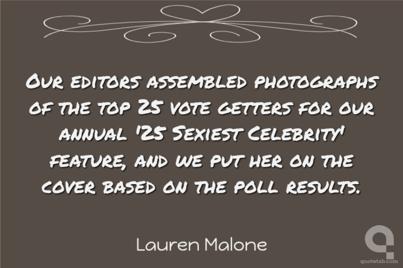 Our editors assembled photographs of the top 25 vote getters for our annual '25 Sexiest Celebrity' feature, and we put her on the cover based on the poll results.