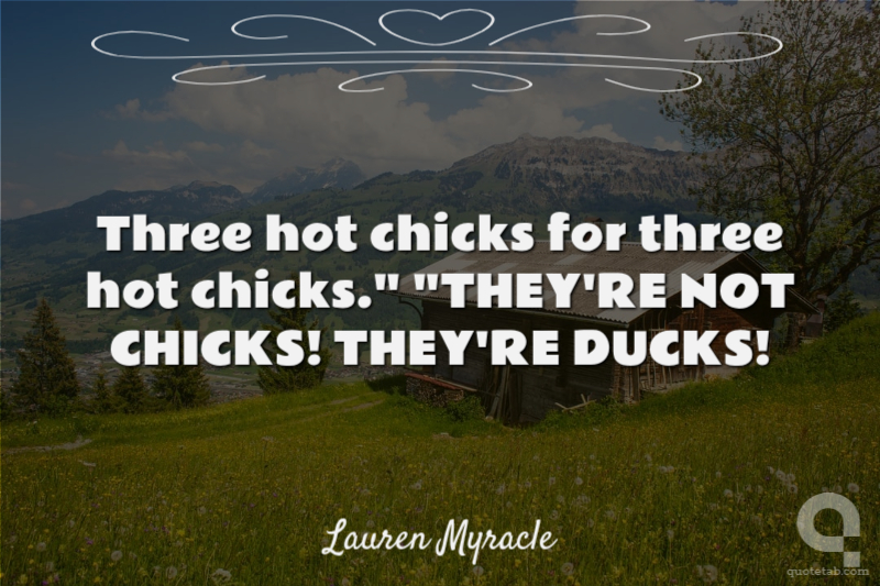 Three hot chicks for three hot chicks." "THEY'RE NOT CHICKS! THEY'RE DUCKS!