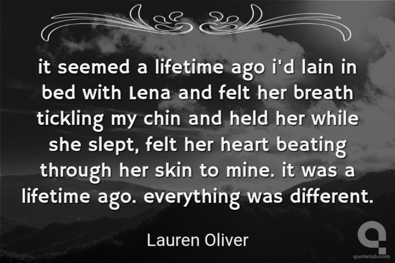 it seemed a lifetime ago i'd lain in bed with Lena and felt her breath tickling my chin and held her while she slept, felt her heart beating through her skin to mine. it was a lifetime ago. everything was different.