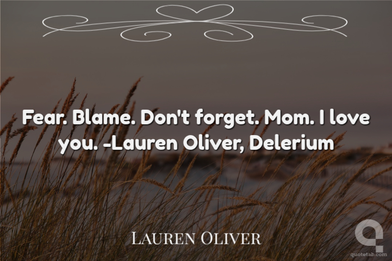 Fear. Blame. Don't forget. Mom. I love you. -Lauren Oliver, Delerium