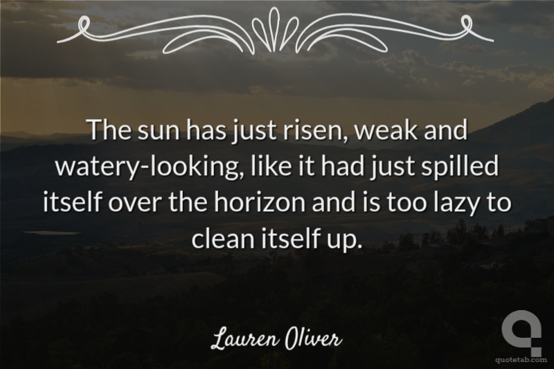 The sun has just risen, weak and watery-looking, like it had just spilled itself over the horizon and is too lazy to clean itself up.