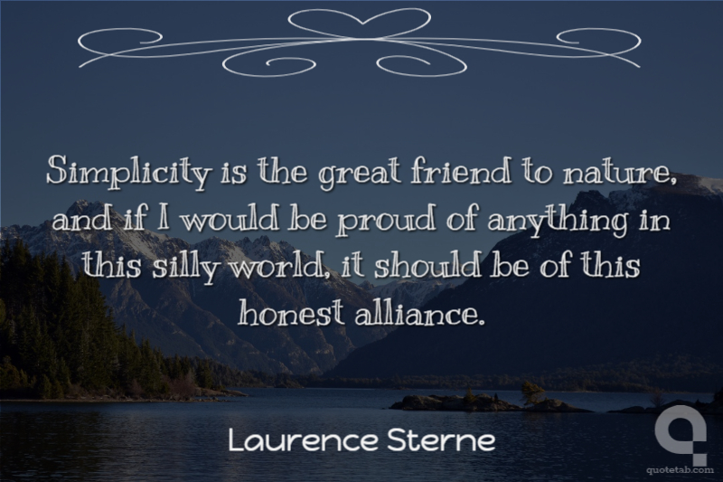 Simplicity is the great friend to nature, and if I would be proud of anything in this silly world, it should be of this honest alliance.