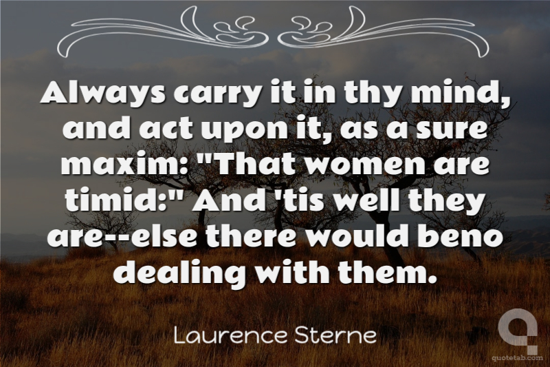 Always carry it in thy mind, and act upon it, as a sure maxim: "That women are timid:" And 'tis well they are--else there would beno dealing with them.