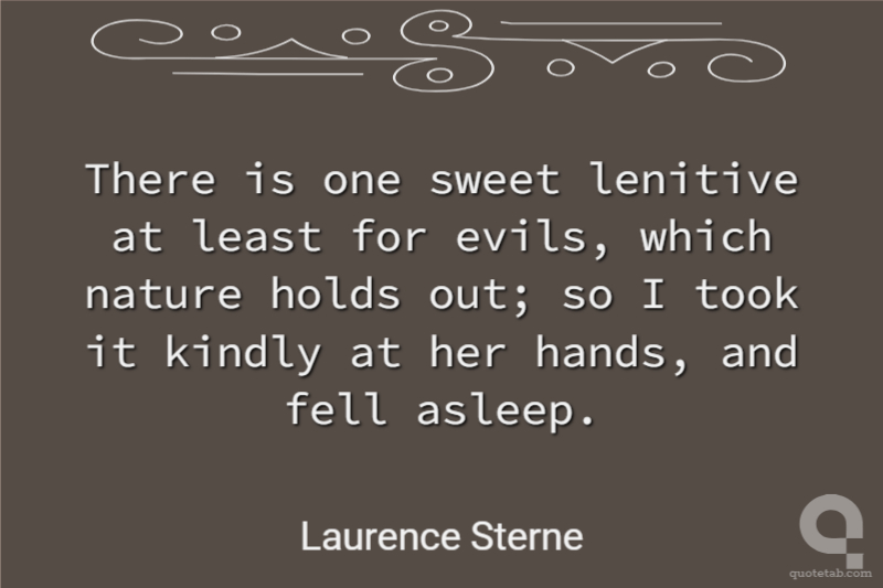 There is one sweet lenitive at least for evils, which nature holds out; so I took it kindly at her hands, and fell asleep.