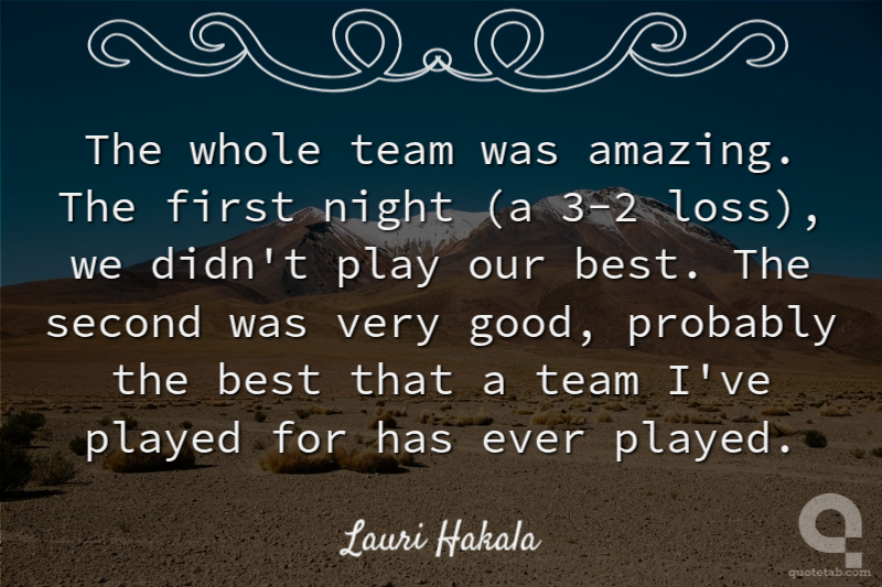 The whole team was amazing. The first night (a 3-2 loss), we didn't play our best. The second was very good, probably the best that a team I've played for has ever played.