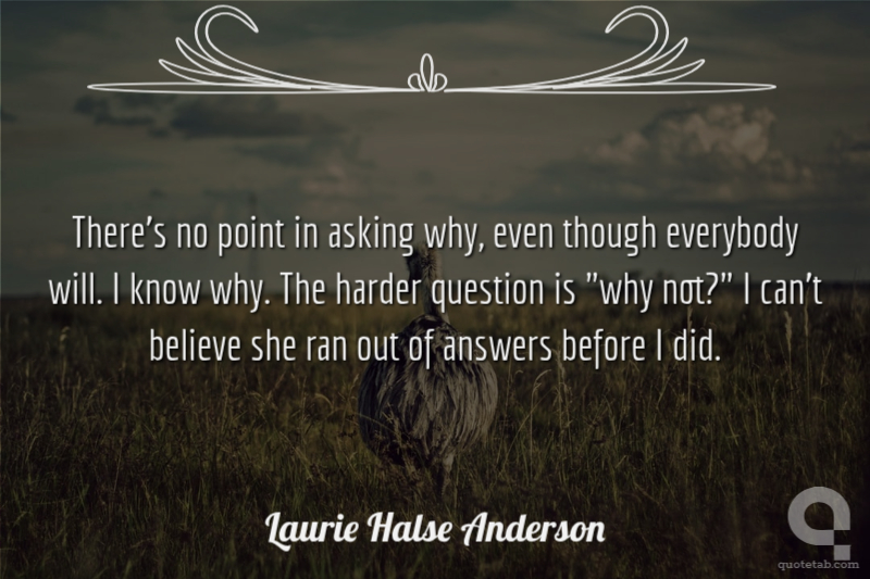 There's no point in asking why, even though everybody will. I know why. The harder question is "why not?" I can't believe she ran out of answers before I did.