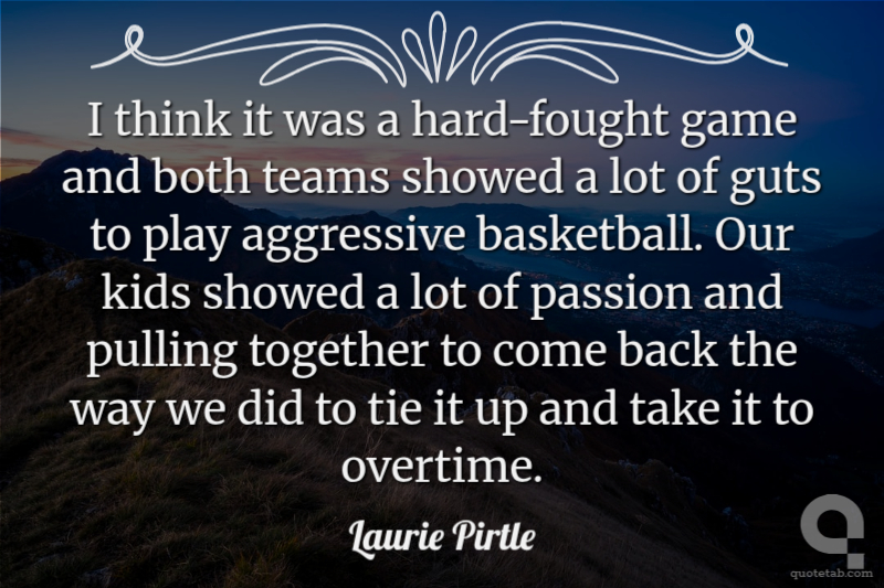 I think it was a hard-fought game and both teams showed a lot of guts to play aggressive basketball. Our kids showed a lot of passion and pulling together to come back the way we did to tie it up and take it to overtime.