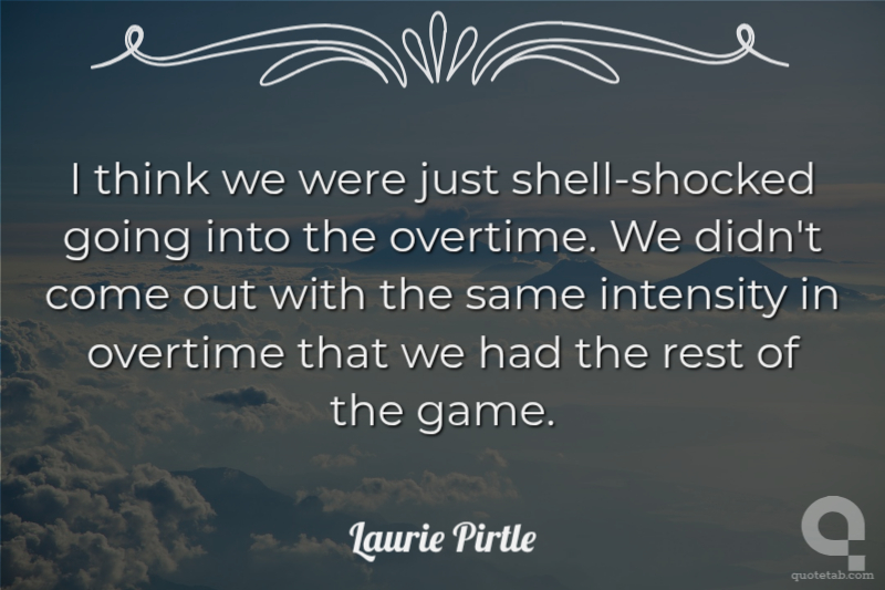 I think we were just shell-shocked going into the overtime. We didn't come out with the same intensity in overtime that we had the rest of the game.