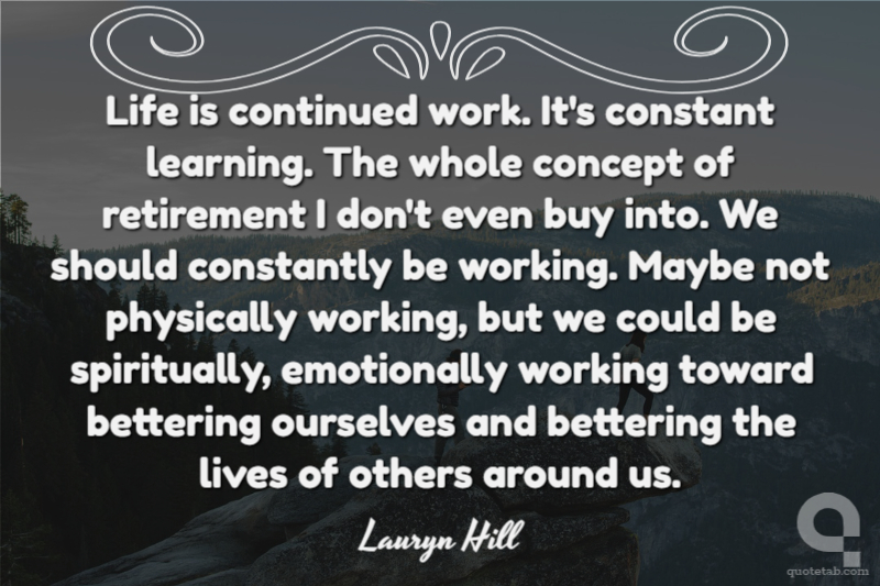 Life is continued work. It's constant learning. The whole concept of retirement I don't even buy into. We should constantly be working. Maybe not physically working, but we could be spiritually, emotionally working toward bettering ourselves and bettering the lives of others around us.