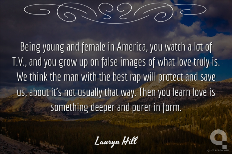 Being young and female in America, you watch a lot of T.V., and you grow up on false images of what love truly is. We think the man with the best rap will protect and save us, about it's not usually that way. Then you learn love is something deeper and purer in form.
