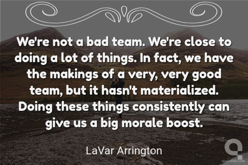 We're not a bad team. We're close to doing a lot of things. In fact, we have the makings of a very, very good team, but it hasn't materialized. Doing these things consistently can give us a big morale boost.