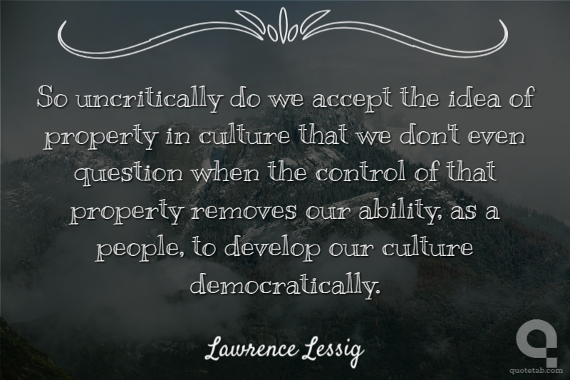 So uncritically do we accept the idea of property in culture that we don't even question when the control of that property removes our ability, as a people, to develop our culture democratically.