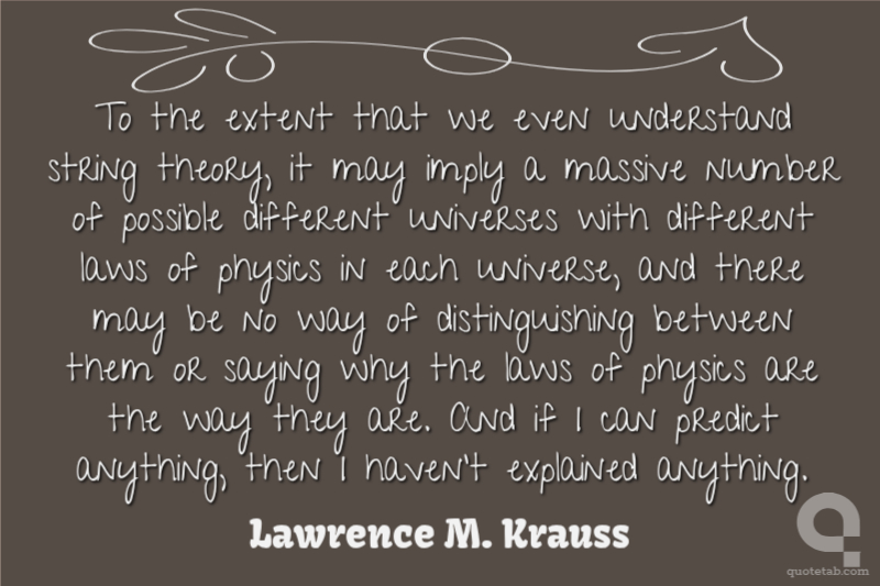 To the extent that we even understand string theory, it may imply a massive number of possible different universes with different laws of physics in each universe, and there may be no way of distinguishing between them or saying why the laws of physics are the way they are. And if I can predict anything, then I haven't explained anything.