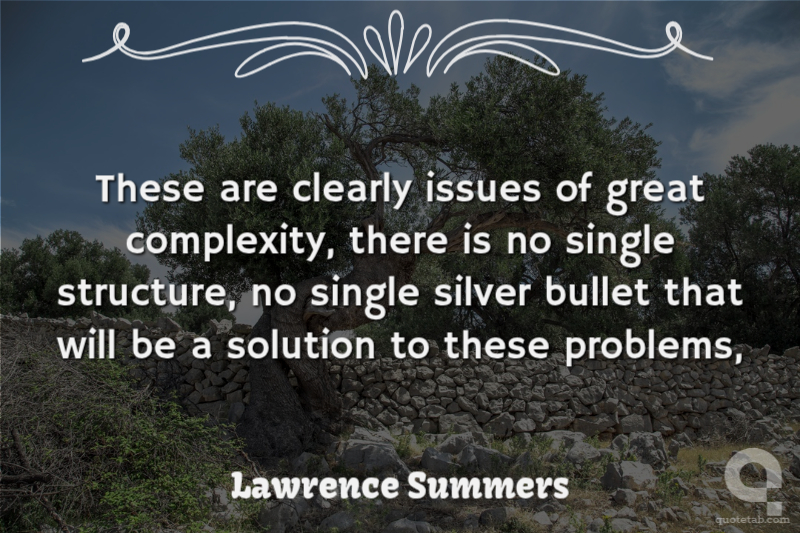 These are clearly issues of great complexity, there is no single structure, no single silver bullet that will be a solution to these problems,