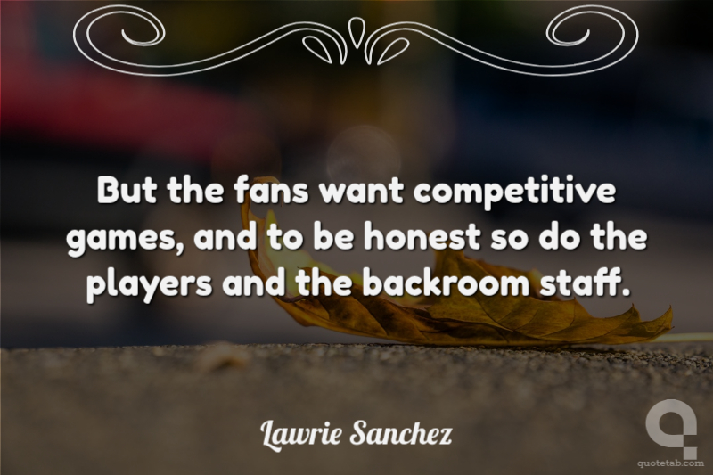 But the fans want competitive games, and to be honest so do the players and the backroom staff.